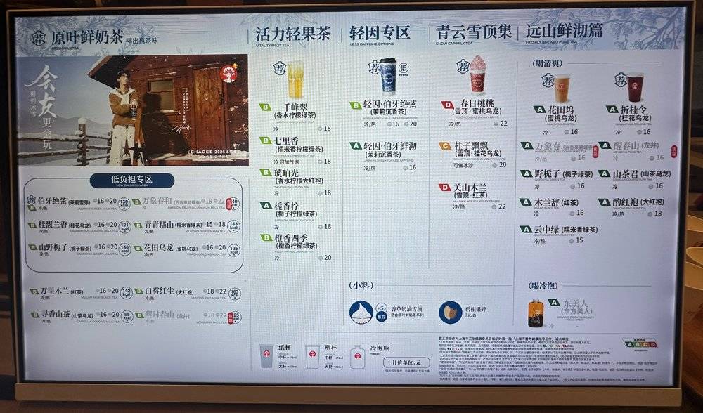 进入12月,寰宇多地霸王茶姬门店电子屏上,都在滚动展示霸王茶姬的新品——伯牙绝弦花香款。